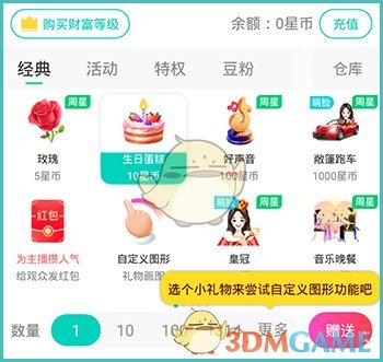3。星币可以用来购买各种礼物打赏主播。一般主播在收礼的时候会报出观众的名字,感谢观众的打赏。另外,充值星币的价格是1元人民币= 100星币。