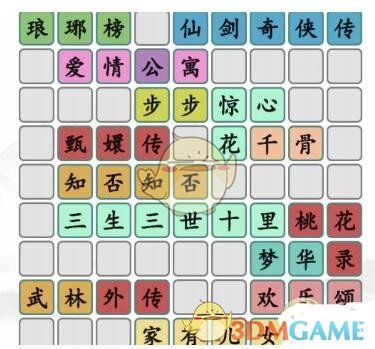 2。这些都是家喻户晓的电视剧。你首先要确定顶部的空的部分,然后在下面找到需要的汉字,把它移动到正确的位置。也可以参考攻略来拼