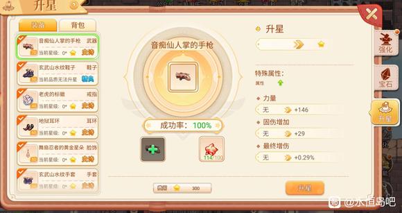 3、60级下的武器升星是一级50星晶加上250星币,每次往上一级就多50星晶加星币。60到90高级武器是100星晶加300星币,每往上就每个多50星晶加上星币。